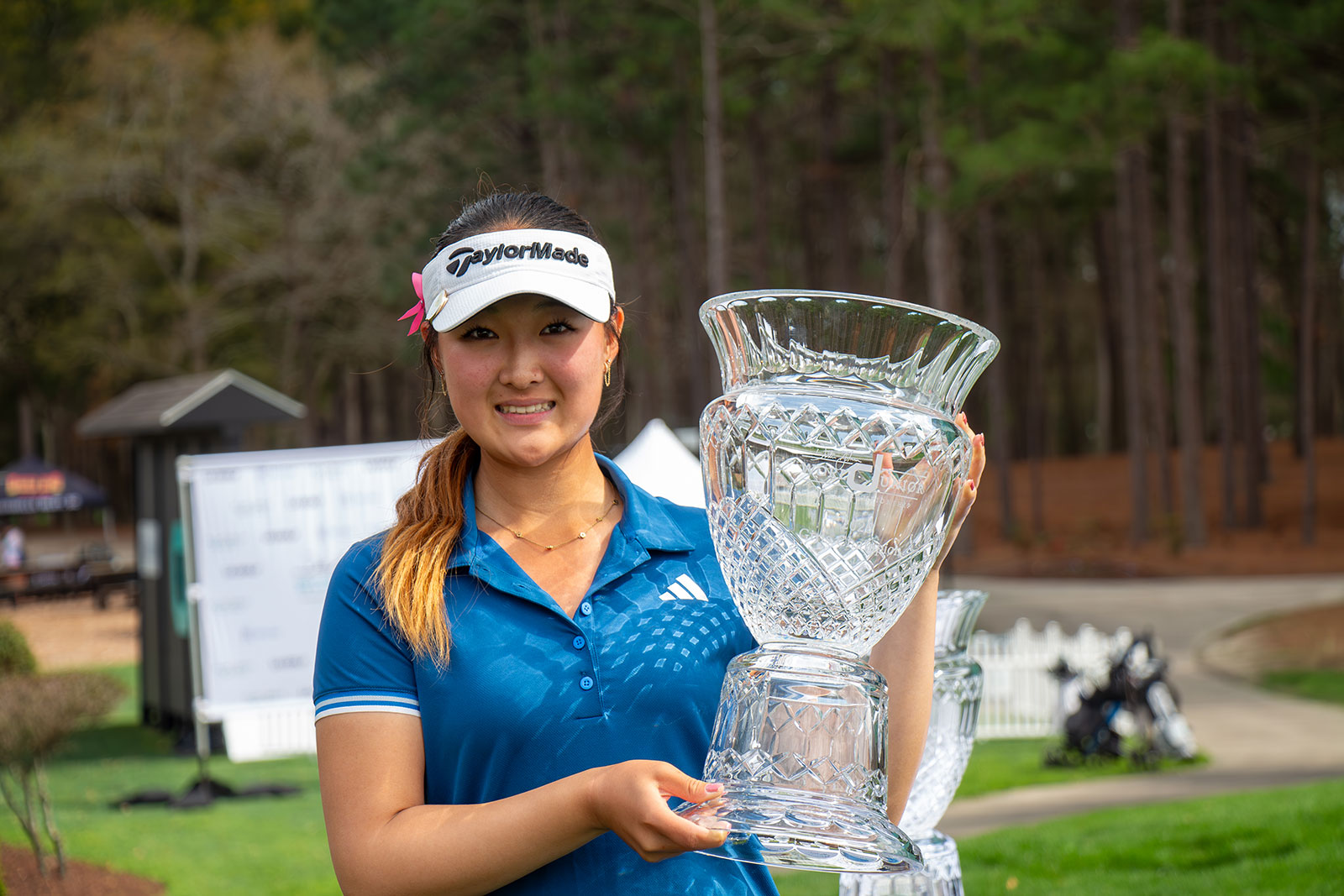 Three players tied for second at 4-over-par 220: Eileen Park, Macie Rasmussen, and Michelle Xing.